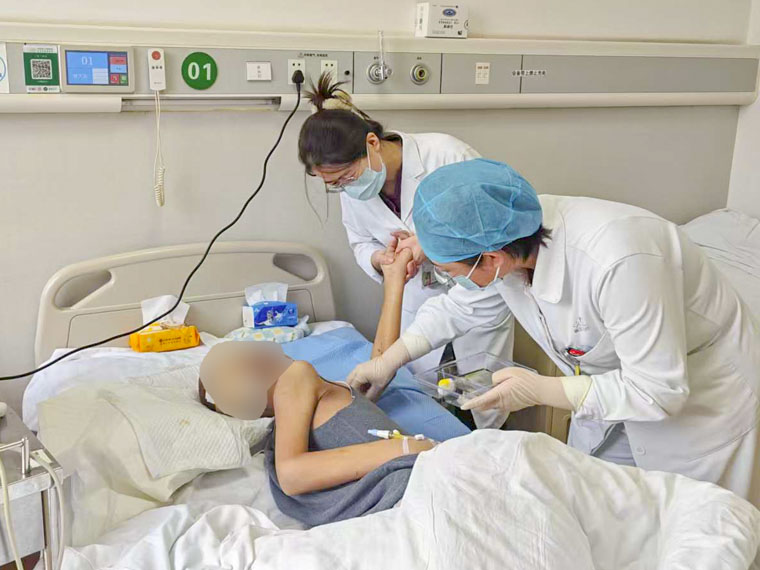 春节期间,内分泌科医护人员坚守岗位,每日为多名糖尿病足患者细致换药、护理。“一天一个样,这个春节过得舒心!” 一句朴实的话语,道出了患者真切的感激与安心。